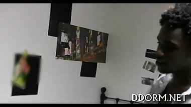 Rubbing oil on chick'_s sexy body